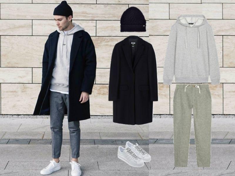 11. Phối áo dạ nam cùng quần jogger