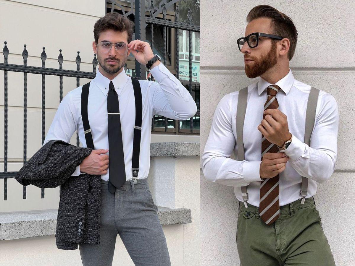 Hàng loạt phụ kiện ra đời khiến nam giới quên đi sự tồn tại của những sợi dây đeo quần. Chúng tuy cổ điển nhưng chưa khi nào mất đi sự thời thượng của mình. Dây đeo quần dễ dùng nhất khi đi với sơ mi trắng và quần âu màu trung tính. Hãy kết hợp thêm một số phụ kiện nữa cho bộ trang phục của mình nhé: cavat, đồng hồ, kính râm,… Giày slip-on, giày tây là những món đồ hoàn hảo cho set đồ này của bạn.