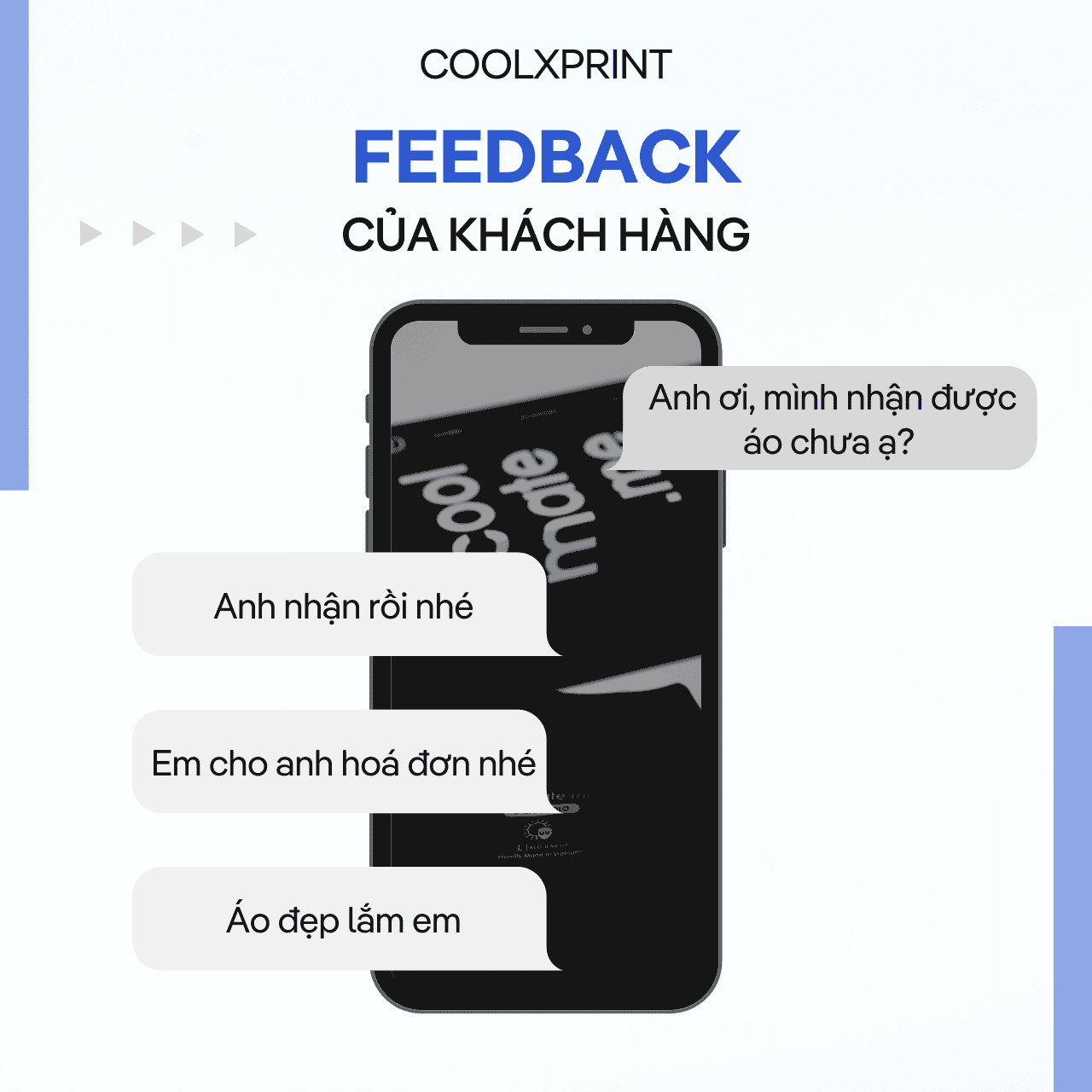 CoolxPrint đáp ứng mọi nhu cầu của mình rất nhanh chóng và chuyên nghiệp. Rất tuyệt vời. Chắc chắn mình sẽ giới thiệu CoolxPrint cho bạn bè của mình để nhiều người biết đến CoolxPrint và trải nghiệm dịch vụ tuyệt vời này.”
