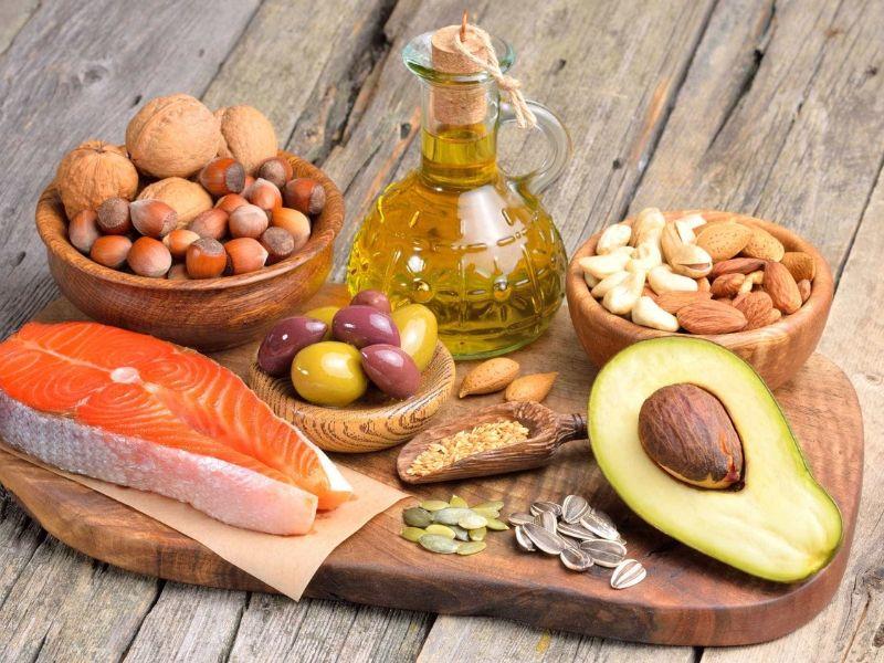 - Chất béo lành mạnh: Hãy chọn các loại chất béo lành mạnh như dầu oliu, dầu hạt lanh, dầu cá, hạt và quả giàu chất béo không bão hòa.
