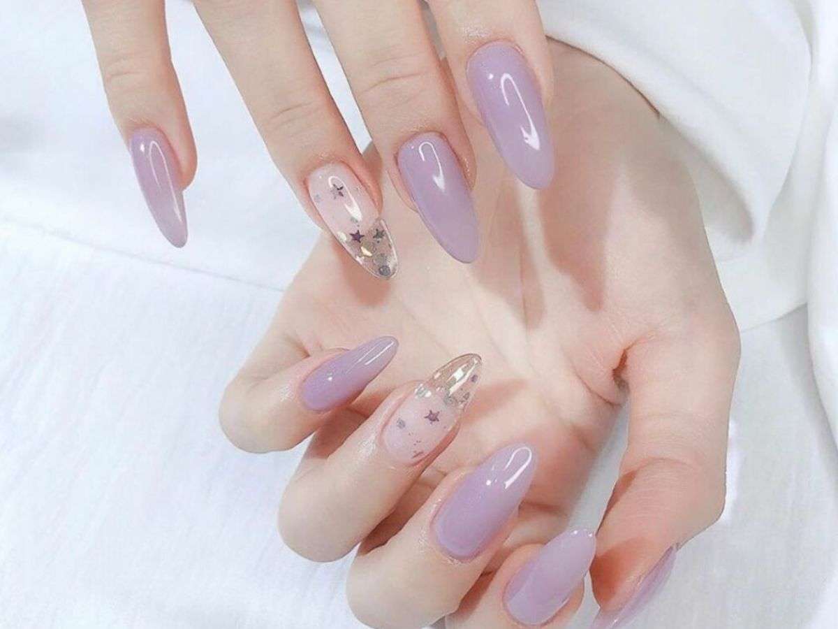 Màu tím pastel là những gam màu tím nhạt, nhẹ nhàng như tím lavender, tím lilac, tạo cảm giác ngọt ngào, trong trẻo và nữ tính. Đây là một lựa chọn an toàn nhưng không hề nhàm chán, phù hợp với nhiều hoàn cảnh từ đi học, đi làm đến những buổi hẹn hò nhẹ nhàng. Các mẫu nail tím pastel nổi bật bao gồm:
