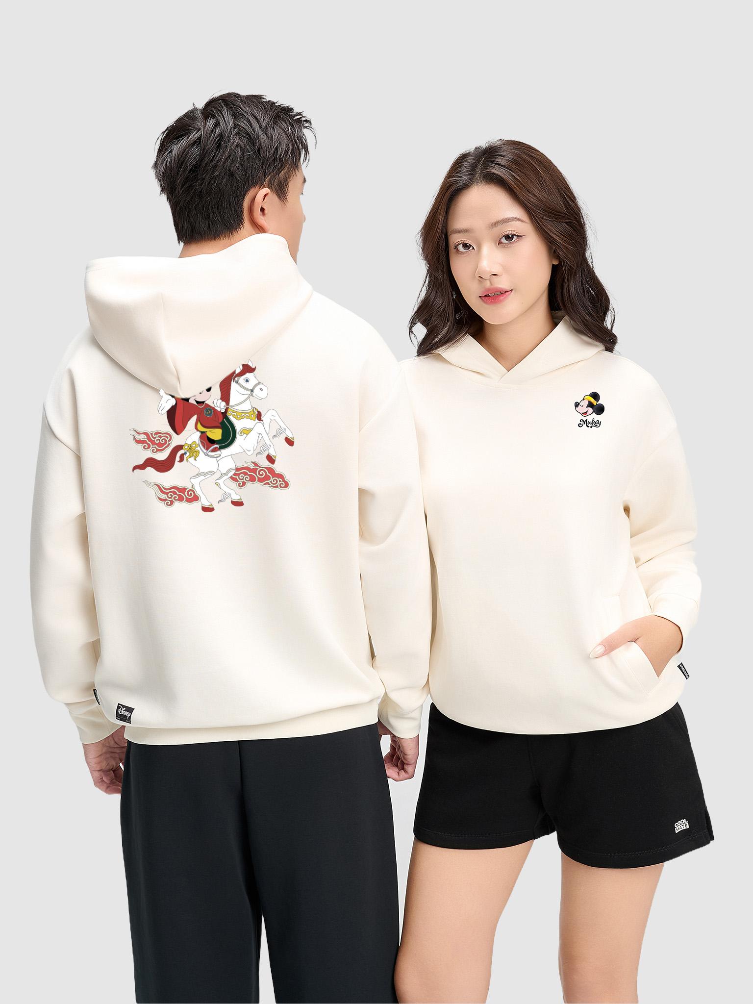 Chào đón năm mới với tinh thần bứt phá, Áo nỉ Hoodie Năm con Ngựa là item mang đậm dấu ấn cá tính và nguồn năng lượng dồi dào. Là một thiết kế đặc biệt trong tủ đồ thu đông, chiếc áo hoodie này có thiết kế Unisex, là lựa chọn lý tưởng để khởi đầu một năm mới đầy hứng khởi cho cả tủ đồ nam và đồ nữ. Nổi bật trong dòng áo in hình nhờ họa tiết Mickey cưỡi ngựa đầy sống động, sản phẩm được làm từ chất liệu nỉ cao cấp, pha trộn giữa 66% vải Cotton mềm mại và 34% Recycled Polyester bền bỉ, mang lại sự ấm áp và thoải mái trên mọi hành trình.